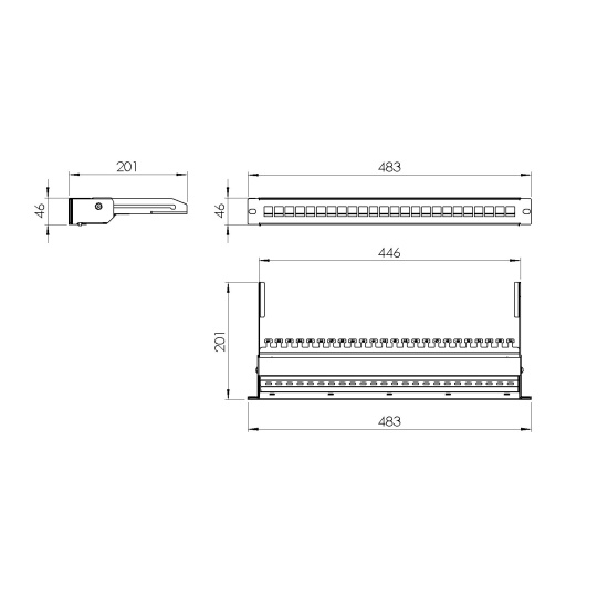 Neosazený 24 portový patch panel pro UTP/FTP, výsuvnýVelikost: 1U