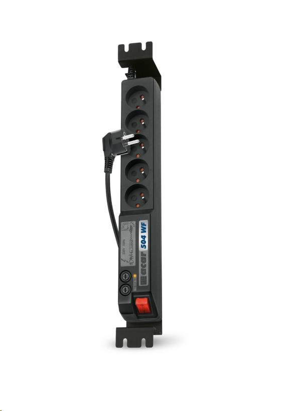 19" rozvodný panel ACAR 5x230V, vypínač, indikátor napětí, přepěťová ochrana, kabel 5m