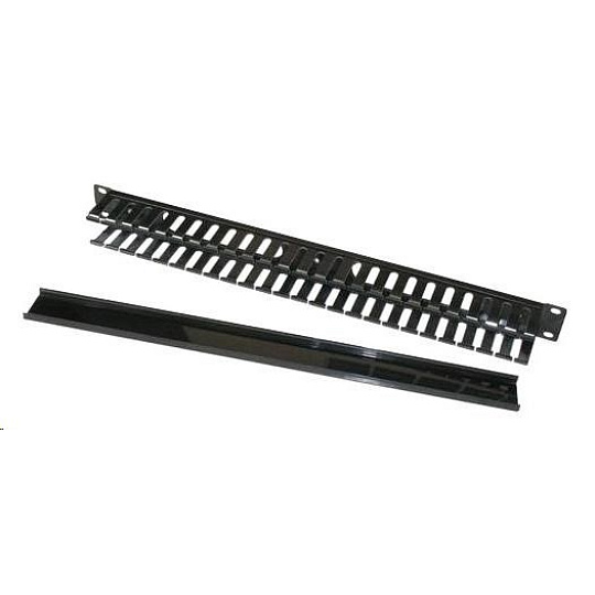 19" vyvazovací panel 1U, kovový s plastovým krytem, 40x50mm, průchozí, černý