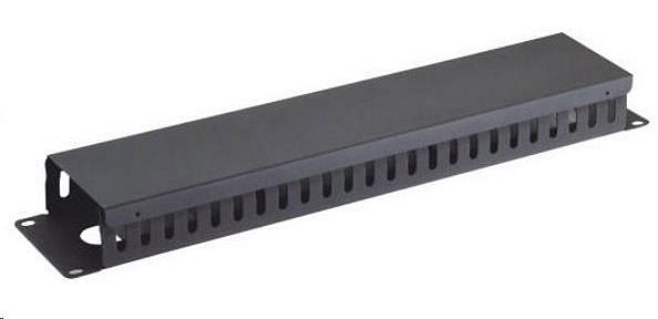 19" vyvazovací panel 2U, celokovový s krytem 90x45mm, průchozí, černý.... více