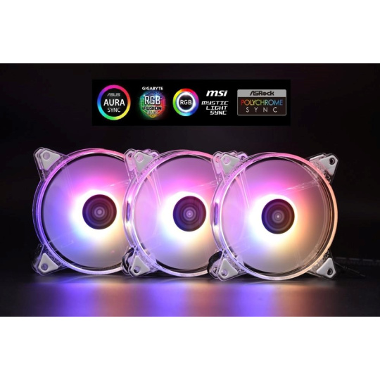 Také si můžete si vybrat z několika variant připravených setů a nebo poskládat řešení dle vlastních preferencí, všechny komponenty jsou vzájemně kompatibilní. A s řadičem a dálkovým ovládáním máte možnost samy regulovat výběr i rychlosti efektů, regulace intenzity podsvícení, otáček ventilátorů a nebo propojit celý systém přímo s základní deskou Vašeho počítače a to prostřednictvím třípinového ARGB konektoru. Řešení je kompatibilní se systémy ASUS Aura Sync, MSI Mystic Light, GIGABYTE RGB Fusion i ASRock Polychrome Sync.