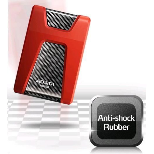 ADATA Externí HDD 1TB USB 3.1 DashDrive Durable HD650, červený (gumový, nárazu odolný)