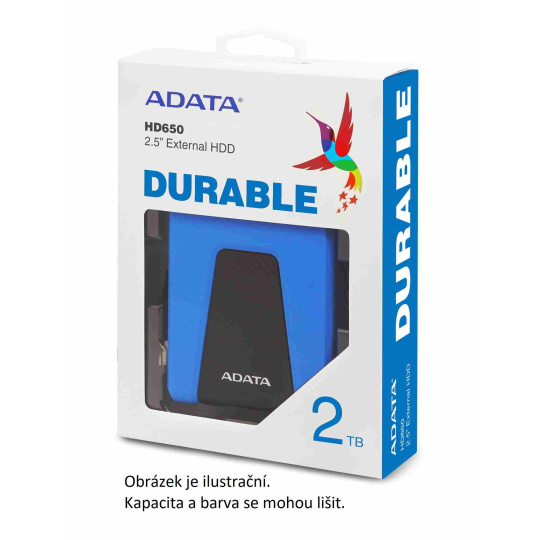 ADATA Externí HDD 2TB USB 3.1 DashDrive Durable HD650, červený (gumový, nárazu odolný)