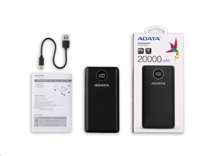 Zkraťte si čekání s powerbankou ADATA P20000QCD! S modelem P20000QCD nabijte svá zařízení coby dup! Tato powerbanka je vybavena velkou baterií 20 000 mAh, má kompaktní formát a podporuje standardy Qualcomm QC 3.0 a USB Power Delivery 3.0.