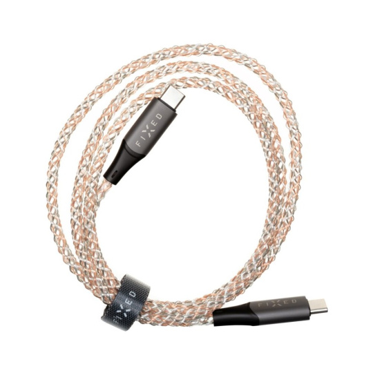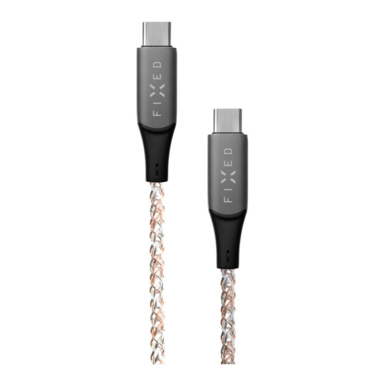 FIXED svítící nabíjecí kabel USB-C/USB-C (PD), 1,2 m, 60W, duhový