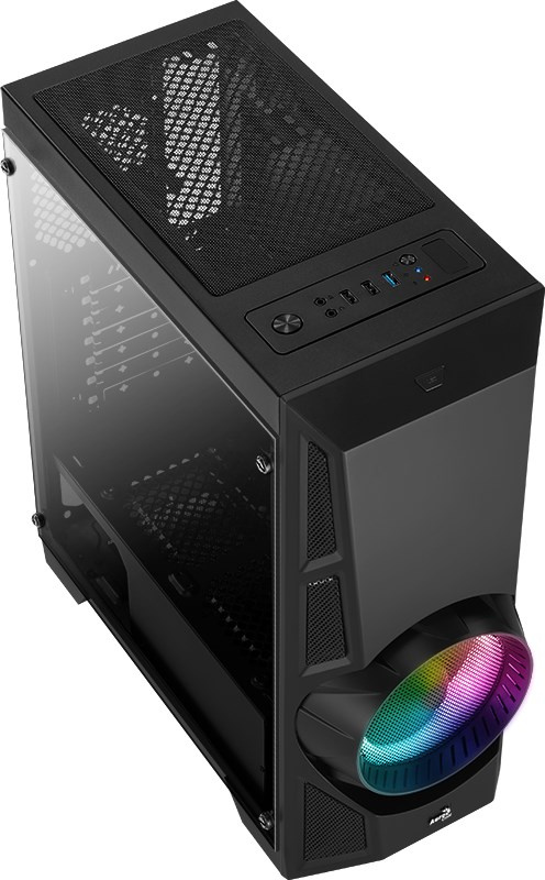 AEROCOOL skříň AeroEngine RGB, Mid tower, 1x USB 3.0, 2x USB 2.0, 2x audio, bez zdroje