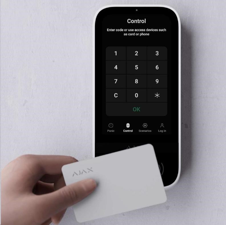 Ajax KeyPad TouchScreen - Bezdrátová klávesnice s dotykovou obrazovkou a bezkontaktní autorizací.