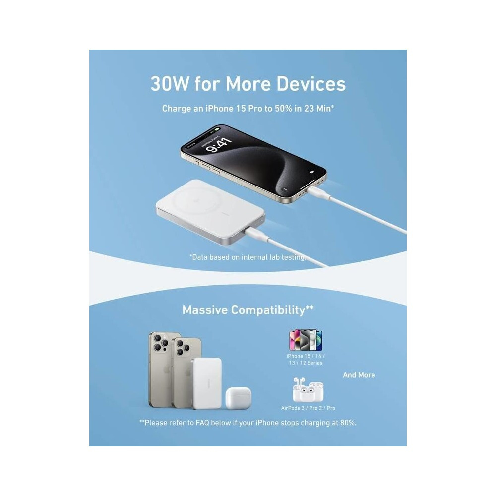 Anker MagGo Qi2/MagSafe powerbanka (10000mAh) 30W bílá