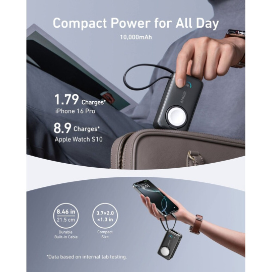 Anker MagGo powerbanka pro Apple Watch (10000mAh) 35W s kabelem USB-C černá