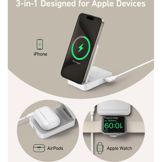 Anker MagGo MagSafe 3v1 nabíječka (15W) bílá