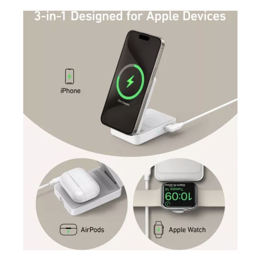 Anker MagGo MagSafe 3v1 nabíječka (15W) bílá