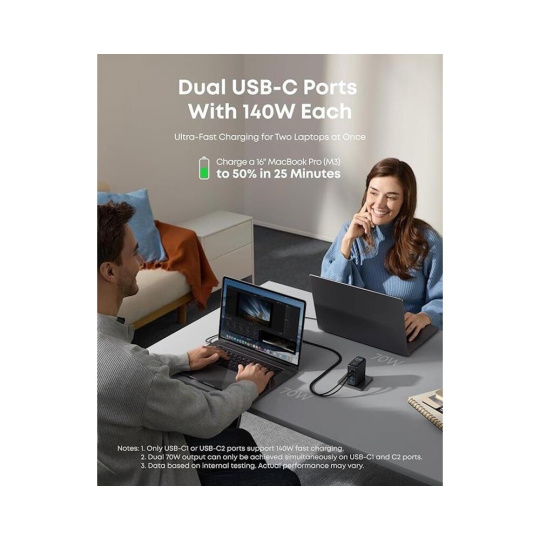 Anker nabíječka do sítě 140W, 3xUSB-C, 1x USB-A stříbrná