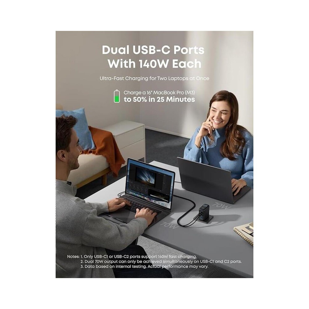 Anker 140W nabíječka, 3x USB-C, 1x USB-A stříbrná