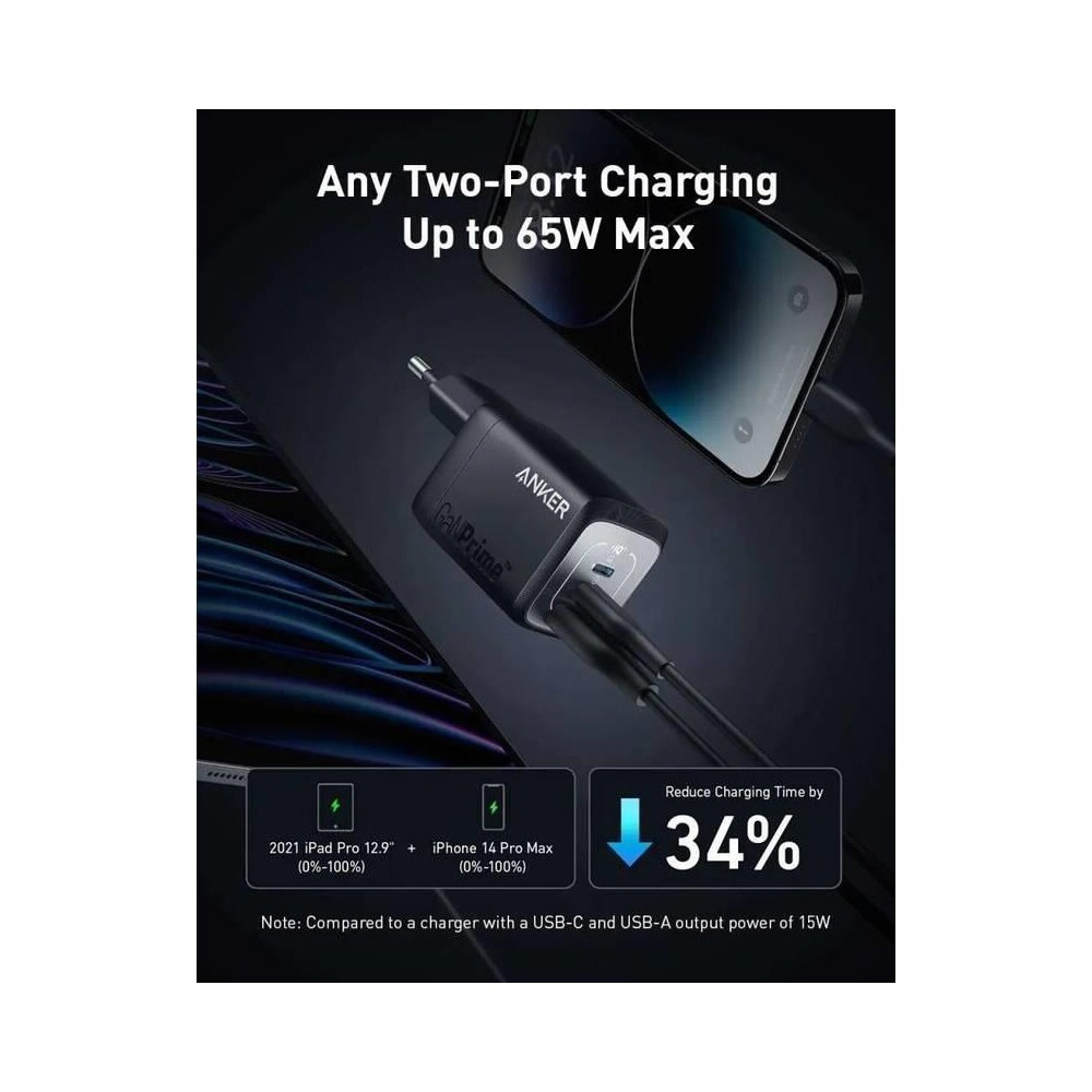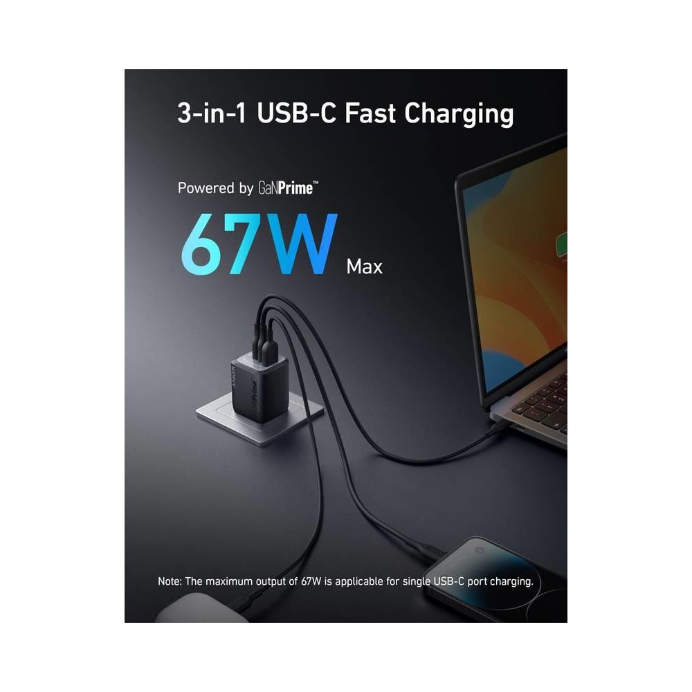 Anker nabíječka do sítě Prime GaN 67W, 2xUSB-C, 1xUSB-A černá