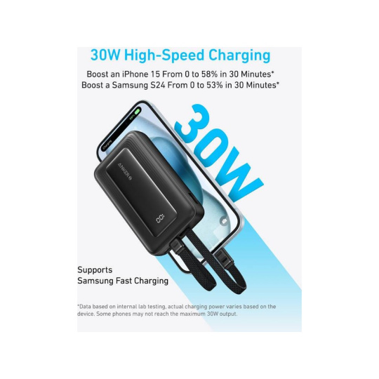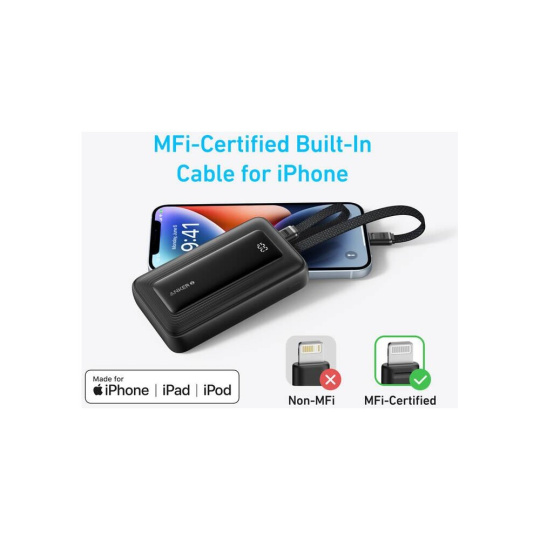 Anker powerbanka 10000mAh, 30W s kabelem USB-C + Lightning černá