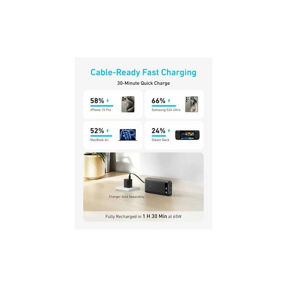 Anker Power Bank (20000mAh) 87W, s USB-C kabelem černá