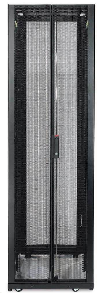 Široká skříň s možnostmi rozšířené správy kabelů pro servery s vysokou hustotou napájení a síťové komponenty. Výška 45U umožňuje snadný transport dveřmi.
