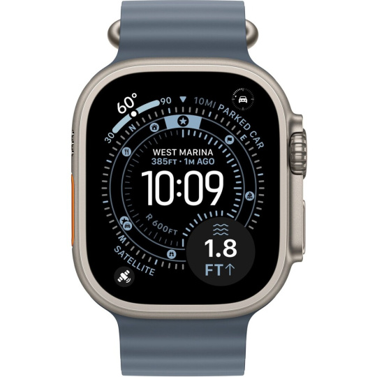 Apple Watch 49/46/45/44mm ocelově modré prodloužení Oceánského řemínku přírodní titan