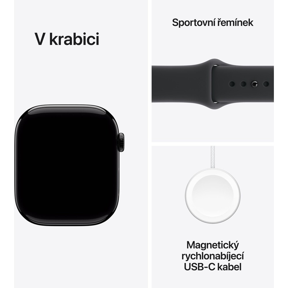 Apple Watch Series 11 (42mm) Klavírně černý hliník s černým sportovním řemínkem M/L