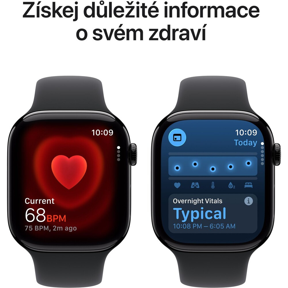 Apple Watch Series 11 (42mm) Klavírně černý hliník s černým sportovním řemínkem S/M
