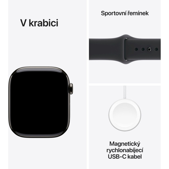 Apple Watch Series 11 Cellular (42mm) Břidlicově šedý titan s černým sportovním řemínkem M/L