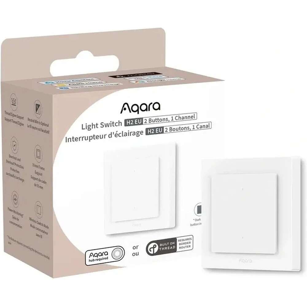 AQARA Light Switch H2 EU (2 tlačítka, 1 kanál) (WS-K07D) Zigbee a Thread vypínač s relé