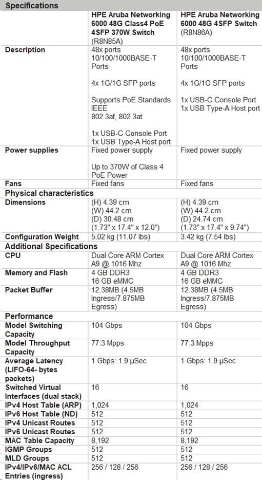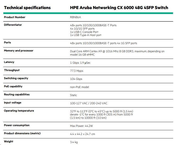 HPE Aruba Networking CX 6000 48G 4SFP Switch R8N86AR RENEW