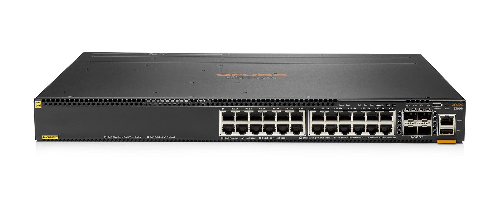 HPE Aruba Networking 6300M 24-port 1GbE Class 4 PoE and 4-port SFP56 Switch.