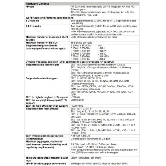 Aruba AP-503H (RW) Dual-radio 802.11ax 2x2 Unified Hospitality AP with 1+2 Ethernet R3V36AR RENEW .