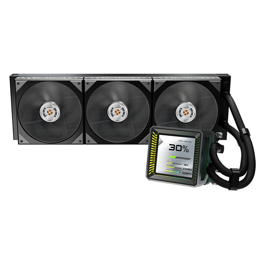 Vysoce výkonné AIO chlazení s 360mm radiátorem a integrovaným 3" LCD displejem pro monitoring systému nebo vlastní grafiku. Je osazeno prémiovými ventilátory s LCP lopatkami a průmyslovými kuličkovými ložisky pro maximální tlak a životnost. Kombinuje robustní konstrukci řady Steel Legend s tichým 3fázovým čerpadlem a plnou podporou nejnovějších socketů Intel i AMD.