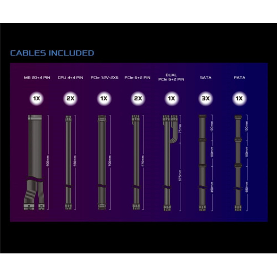 | Dueal PCIe 6+2 Pin Konektor | 1x / 2x (675 + 75 mm) |