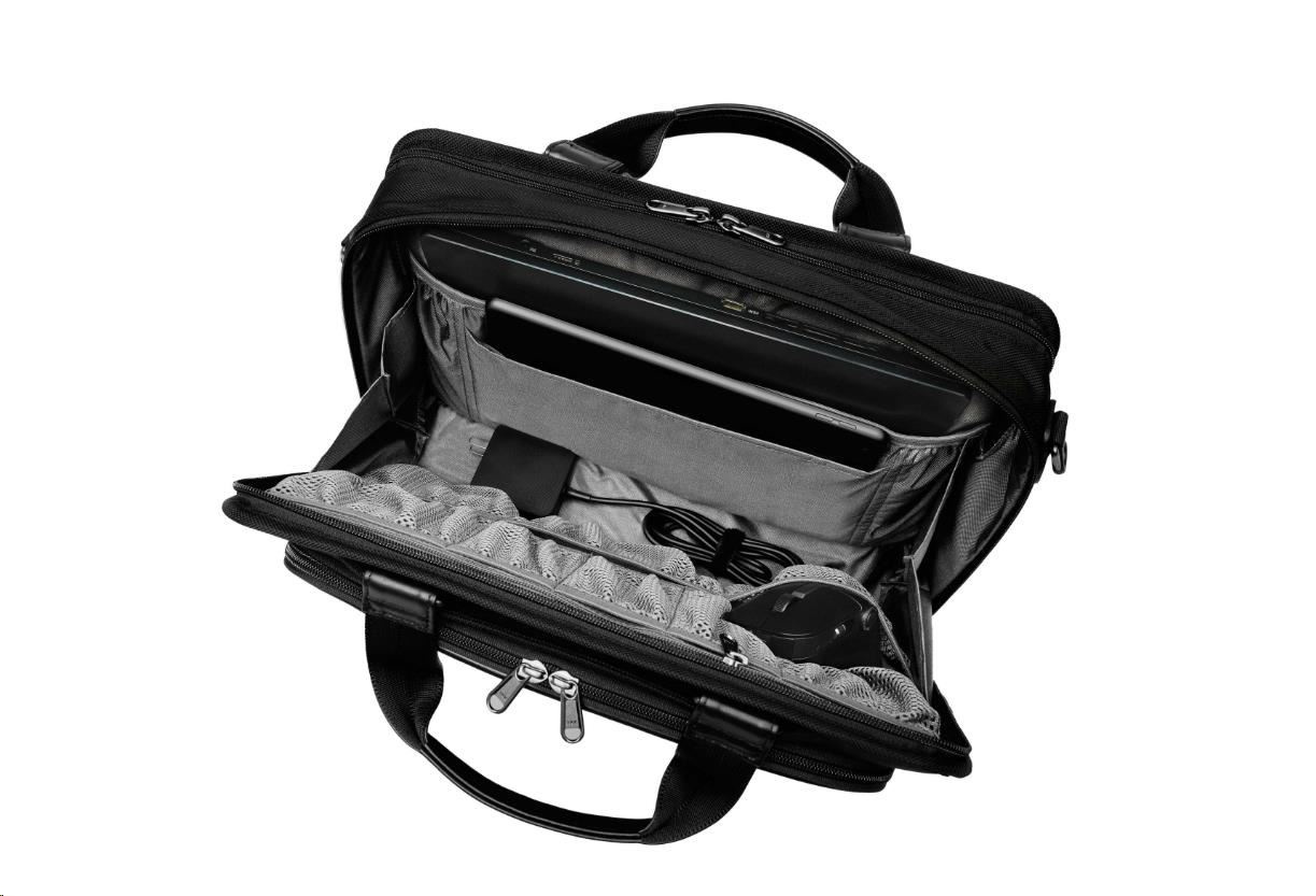 ASUS Vantage Briefcase byl navržený pro práci i volný čas. Je vhodný pro přenos a uložení 15.6 palcového notebooku s příhrádkou pro 11palcový tablet. Propracovaný systém uložení zahrnuje řadu vnějších kapes vhodných k uložení osobních věcí. Přední kapsa je ideální pro až 6palcový telefon a úschovu dokladů.