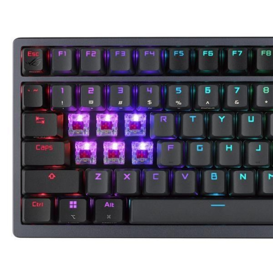 - Mechanické spínače ROG NX vyměnitelné za provozu: Předem namazané spínače pro hladší cvakání a eliminaci odskakování; rychlé ovládání a vyladěné křivky síly ROG poskytují skvělý pocit a konzistenci kláves