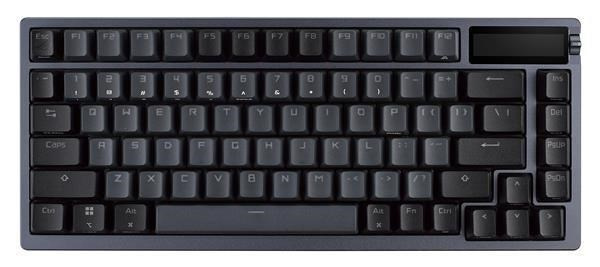 Zakázková herní klávesnice ROG Azoth s tvarovým faktorem klávesnice 75, těsněním, třívrstvou tlumicí pěnou a kovovým horním krytem, vysoce přizpůsobitelná s předem namazanými mechanickými spínači ROG NX vyměnitelnými za provozu, stabilizátory klávesnice ROG, kryty kláves PBT doubleshot a mazací sadou, tri - připojení režimu s 2,4 GHz technologií SpeedNova, OLED displejem, třícestným ovládacím knoflíkem, třemi úhly náklonu a podporou Mac