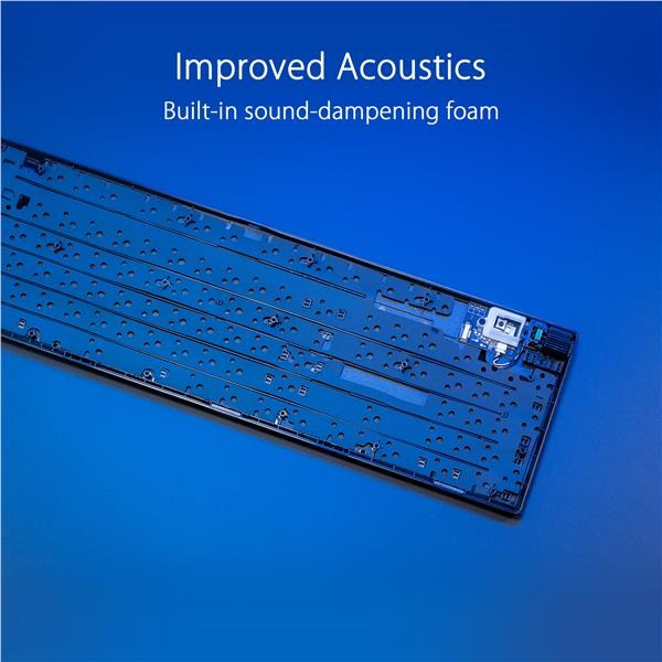 - Mechanické spínače ROG NX Snow & Storm: Předem namazané lineární spínače NX Snow a klikové spínače ROG NX Storm se stěnovým designem stopky pro zvýšení stability úhozu a vyladěné pro skvělou akustiku
