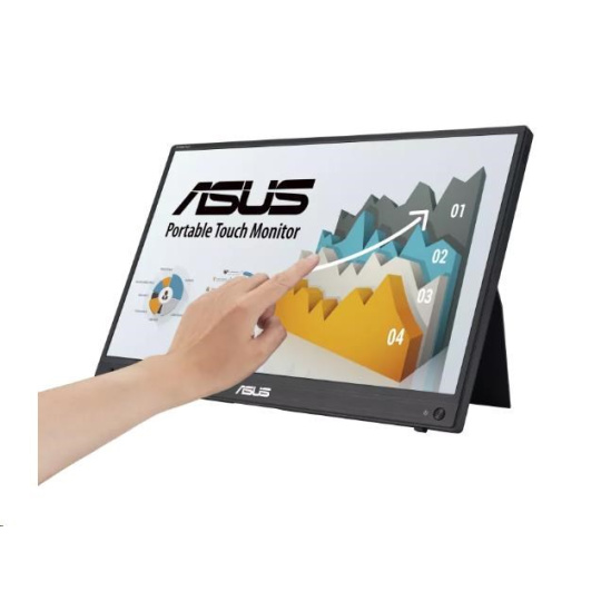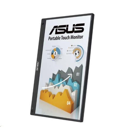16" (15,6" viditelný), FHD (1920 x 1080), IPS, 10bodový dotyk, Vestavěná baterie, Hybrid Signal Solution, Mini-HDMI, ergo stojánek, patice pro stativ, technologie ASUS Flicker Free a Low Blue Light, Kompatibilní s notebooky, smartphony a herními konzolami