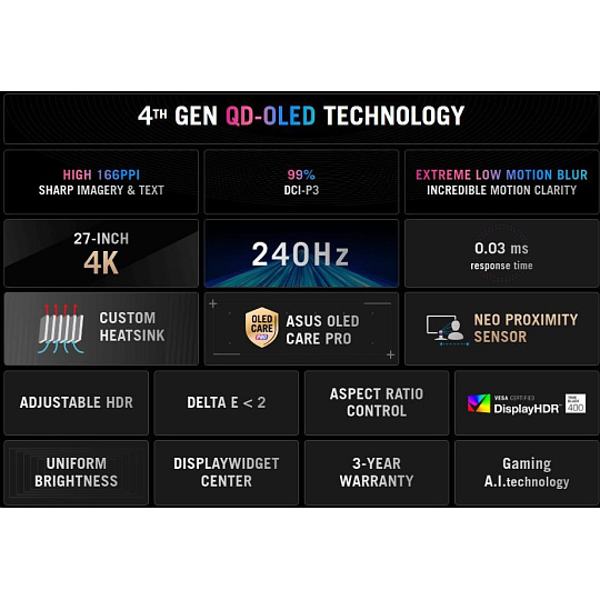Je určen pro náročné hráče a profesionální tvůrce a nabízí obnovovací frekvenci 240 Hz a dobu odezvy 0,03 ms (GTG) pro mimořádně ostrý a plynulý obraz.