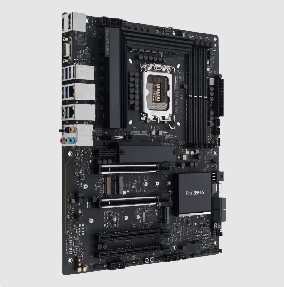 Intel® W680 (LGA 1700) ATX motherboard, PCIe® 5.0, DDR5, dual Intel® 2.5 Gb Ethernet, three PCIe 4.0 M.2 slots, USB 3.2 Gen 2x2 front panel connector, SlimSAS, SATA 6 Gbps, HDMI®, DisplayPort and VGA
