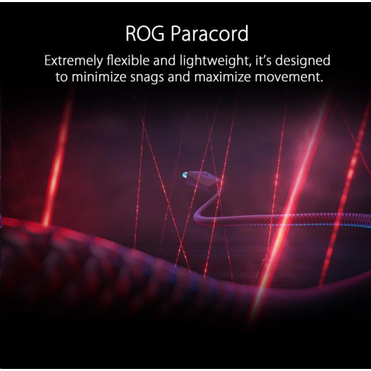 - ROG Paracord - The extremely flexible and lightweight ROG Paracord is designed to minimize snags and maximize movement. The raised port of ROG Spatha X provides space between the cable and tabletop or mousepad surface, minimizing cable drag and noise.
