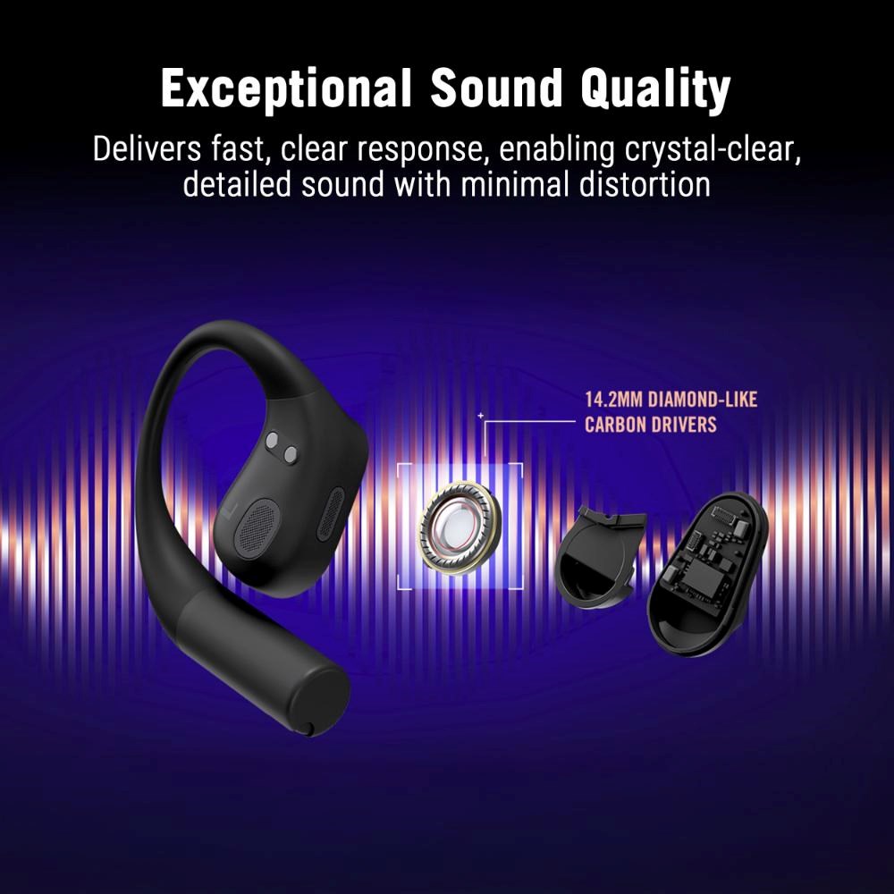 - Navrženo pro pohodlí a kontrolu: Otevřená konstrukce (open-ear), ergonomické háčky za uši a odnímatelný řemínek na krk pro bezpečné celodenní nošení, doplněné o hmatová fyzická tlačítka