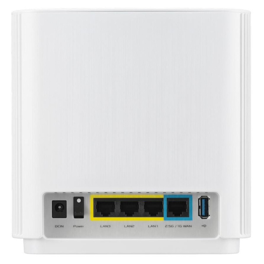Wireless AX7800 Tri Band 2.5Gigabit Router WiFi 6 (802.11ax), 2402Mbps (5G-1) Wi-Fi 6 (802.11ax), 4804Mbps (5GHz-2) Wi-Fi 6 (802.11ax), 574bps (2.4GHz) Whole home mesh wifi system for large and multi-story homes Supports flexible SSID setting, wired inter-router connections AiProtection Pro network security powered by Trend Micro Ethernet 2.5Gigabits WAN x 1, LAN x 3 USB 3.1 Gen 1 x 1.