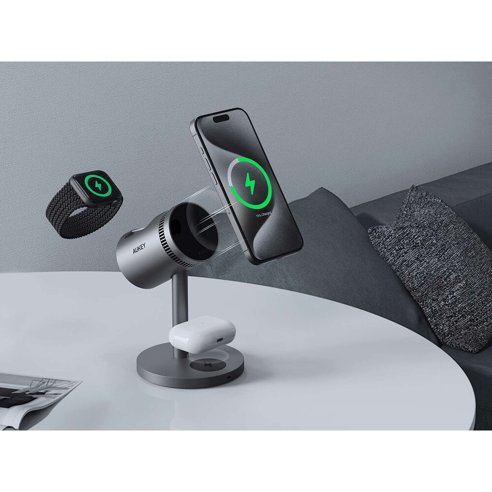 AUKEY LC-MC311A MagFusion 3-in-1 Pro Qi2 nabíječka s chlazením šedá