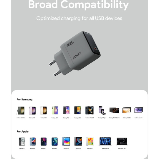 AUKEY PA-C2 Comet 45W PD GaN nabíječka (45W) šedá