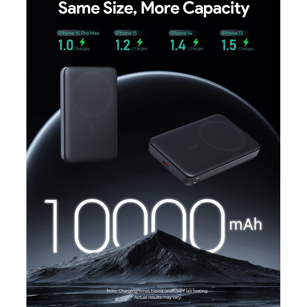 AUKEY PB-MS06 15W MagSafe/Qi2 powerbanka (10000 mAh) šedá