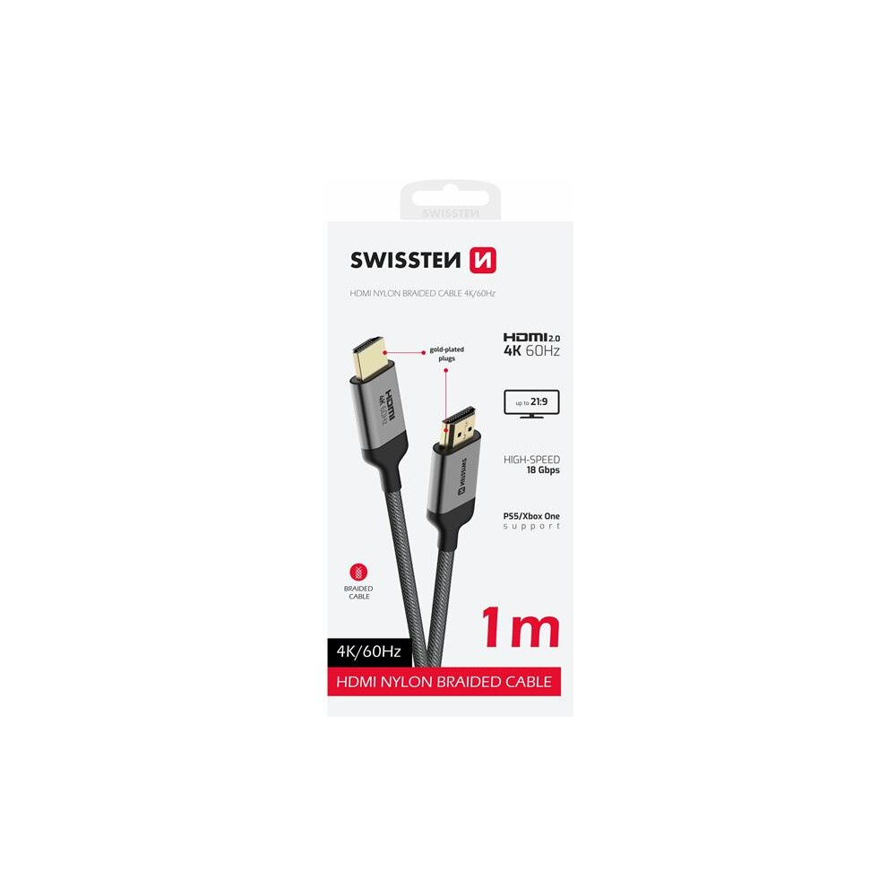 Swissten HDMI 2.0/HDMI 2.0 kabel 4K 1m šedý