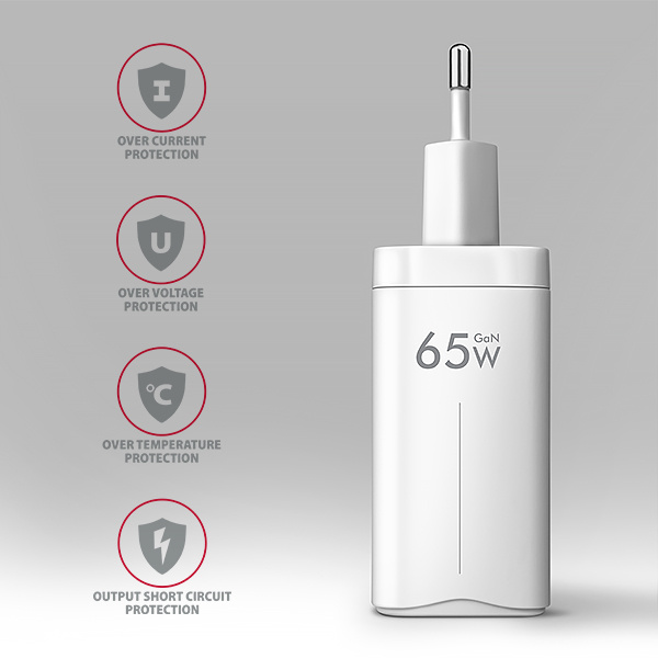 Pokročilý systém ochran na výstupu nabíjecího adaptéru chrání nabíjené zařízení před poškozením. Funkce nabíječky také zajistí rozpoznání nabíjeného zařízení a zvolení optimální rychlosti a průběhu nabíjení.