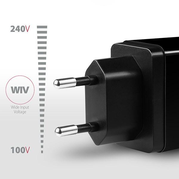 • Wide Input Voltage - funkce širokého rozsahu vstupního napětí, chrání adaptér proti podpětí a přepětí na vstupu a umožní použití více "národních napájecích standardů".