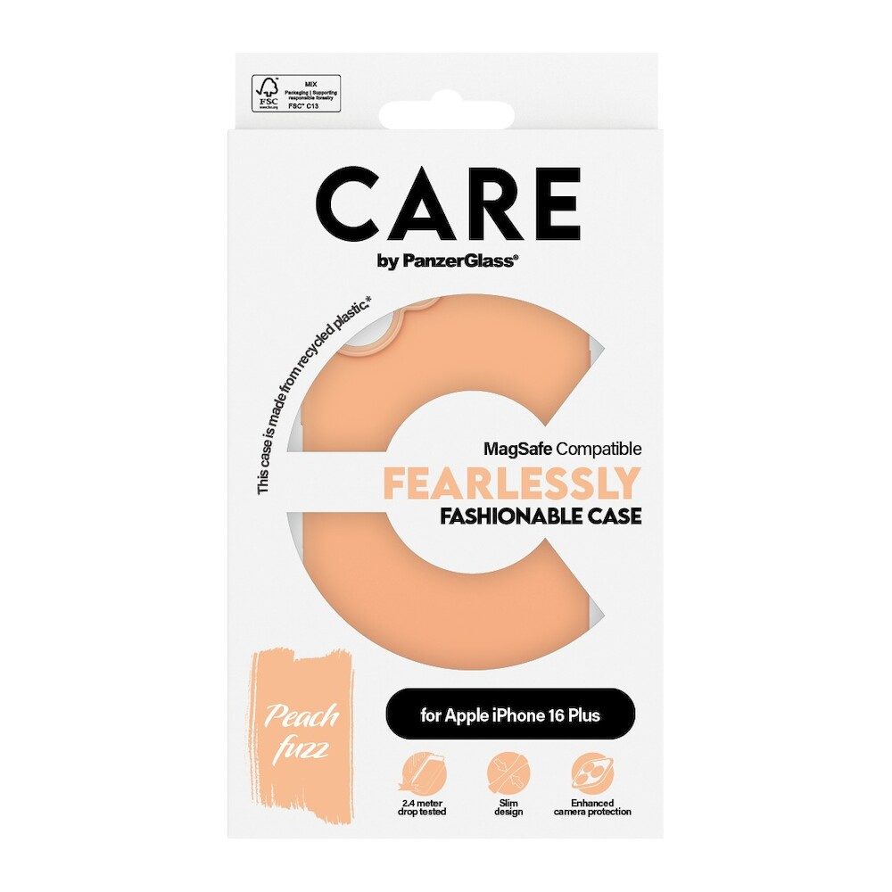 PanzerGlass® CARE kryt Apple iPhone 16 Plus MagSafe Fearlessly broskvový