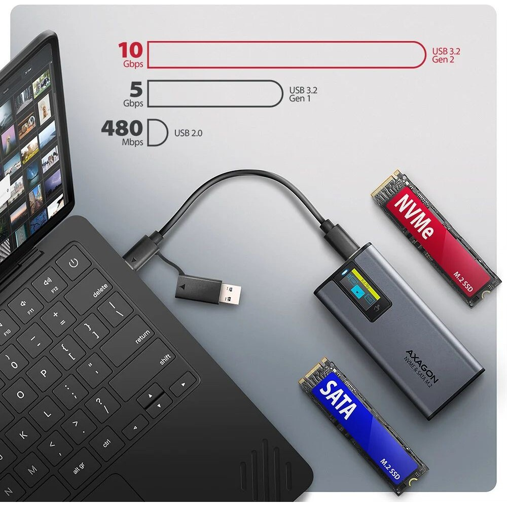 AXAGON EEM2-SD2 USB-C externí box