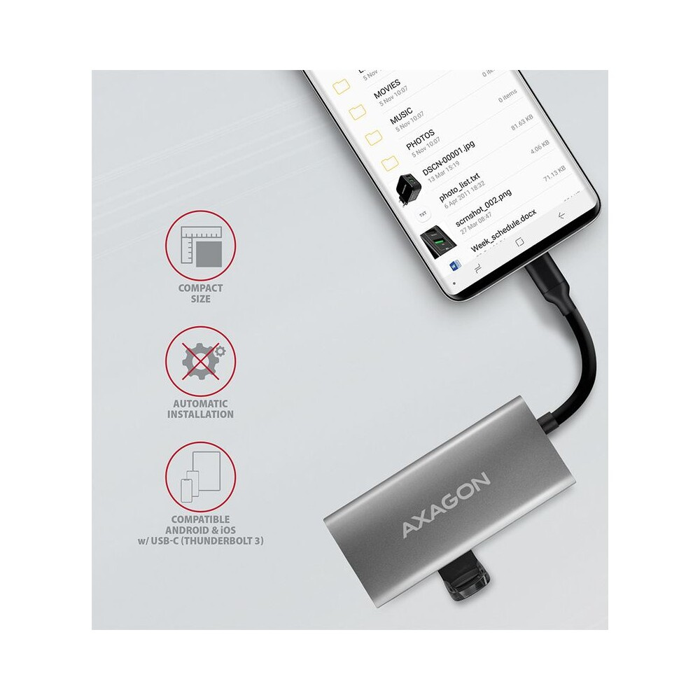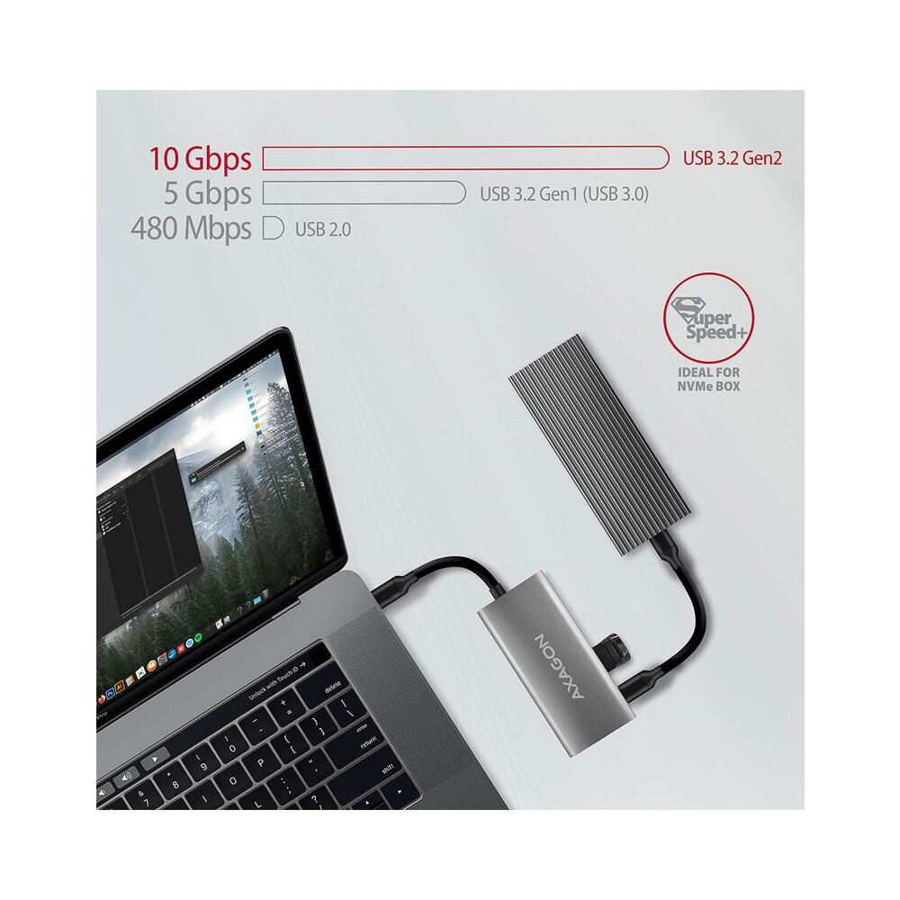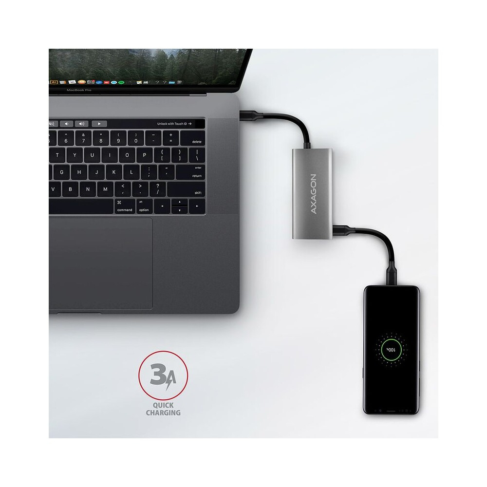 AXAGON HMC4G2 USBC 3.2 Gen 2 10 Gbps hub w. 2x USBA + 2x USBC 13cm USBC cable